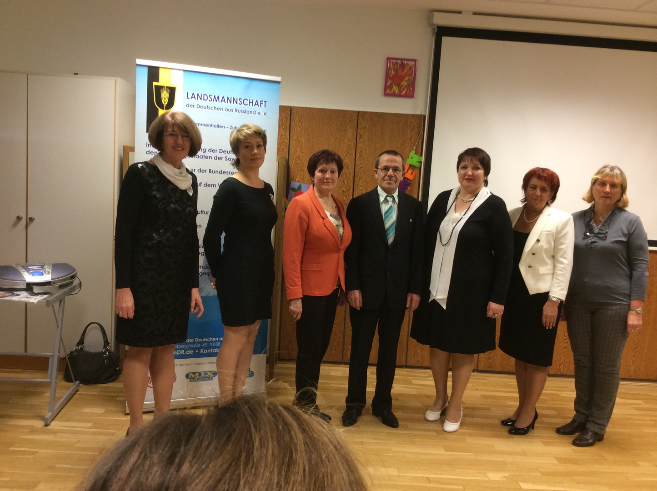 Am 24. Oktober 2015 fand die Jahreshauptversammlung der Kreis- und Ortsgruppe Gifhorn mit Nachwahlen statt. Nach der Eröffnung wurden die Anwesenden von der Vorsitzenden der Landesgruppe Niedersachsen, Lilli Bischoff, begrüßt. Wir durften auch einige Gäste begrüßen, zum einen den Vorsitzenden der Ortsgruppe Wolfsburg, Alexander Rudi, sowie die Leiterin der Trachtentanzgruppe des USK Gifhorn, Svitlana Meister. Der Vorstand setzt sich nach den Nachwahlen wie folgt zusammen: Emanuel Kaufmann (Vorsitzender), Anna Kaufmann (stellv. Vorsitzende), Ludmilla Kok (Kassenführerin), Irina Hofmann (Schriftführerin), Maria Fischer (Kultur und Jugend), Elvira Seibel und Elvira Reimann (Organisationsarbeit). Für die Unterhaltung nach der Versammlung sorgte die Singgruppe „Melodie“ der Kreis- und Ortsgruppe Gifhorn unter der Leitung von Maria Fischer. Die Kindergruppe aus Wolfsburg (Leitung: Natalia Menschulin) begeisterte das Publikum mit Tanz und Gesang. Auch Julia Dalmer wurde für eine Kostprobe am Klavier mit einigen Musikstücken mit viel Applaus belohnt. Der Vorstand der Kreis- und Ortsgruppe Gifhorn bedankt sich recht herzlich bei allen Mitgliedern für das Vertrauen.
